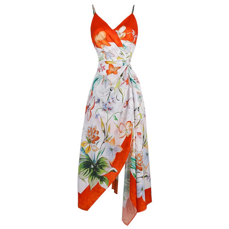 個性が光る♥涼しげセクシーワンピース スリットスカート サマーフローラルドレス ロング 夏物 ビーチ 花柄 韓国系 ガーリー お呼ばれ カジュアル フェミニン BB3584591 | miel style clothing