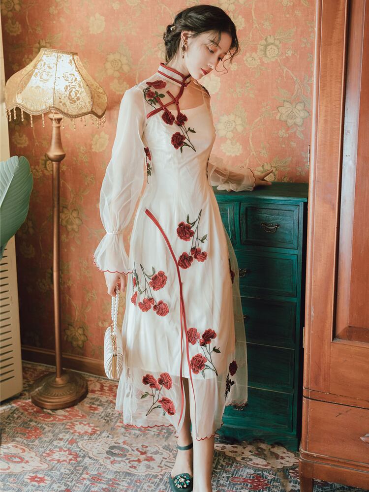 モダンでセクシーレトロミモレ丈ワンピース スタンダードスタイルスカート ドレス 大人ガーリー スウィート キュート カジュアル 秋物 冬物 韓国系 ガーリー お呼ばれ カジュアル フェミニン AA5313047 | miel style clothing