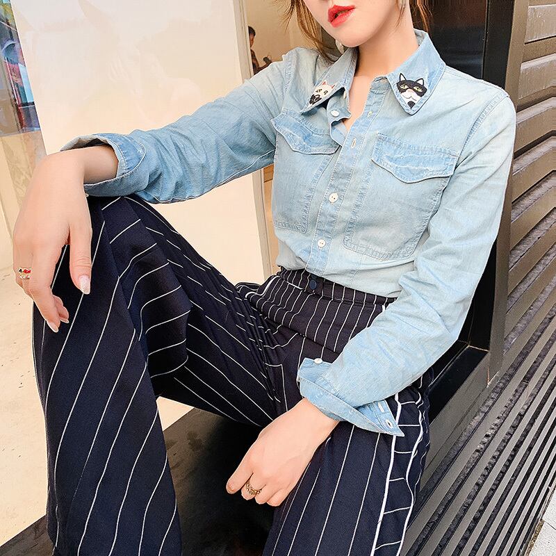 襟元CATカジュアルカラーシャツ スプリングオータム ロング レッド 刺繍 春物 秋物 スクウェア 韓国系 ガーリー お呼ばれ カジュアル フェミニン BB4499418 | miel style clothing