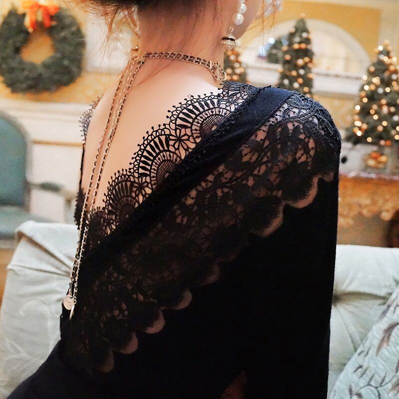デートや女子会に♥背中が美しい♥チョウチョバックレス刺繍シャツブラウス スリムブラックオータムトップス ロング 秋物 韓国系 ガーリー お呼ばれ カジュアル フェミニン BB0825178 | miel style clothing