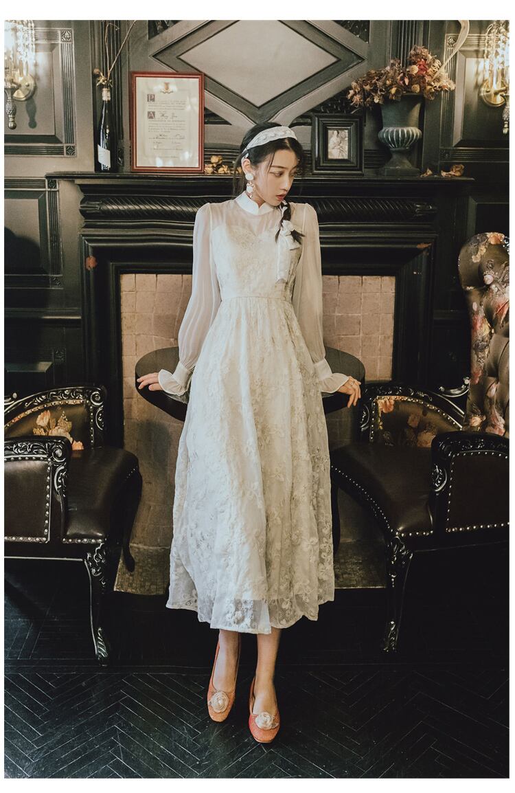 お人形さんみたい♥愛されフェミニンなワンピース スプリングオータムスカート スタンダード ドレス ワンピース レトロ 春物 秋物 フラワーデザイン 韓国系 ガーリー お呼ばれ カジュアル フェミニン AA8669348 | miel style clothing