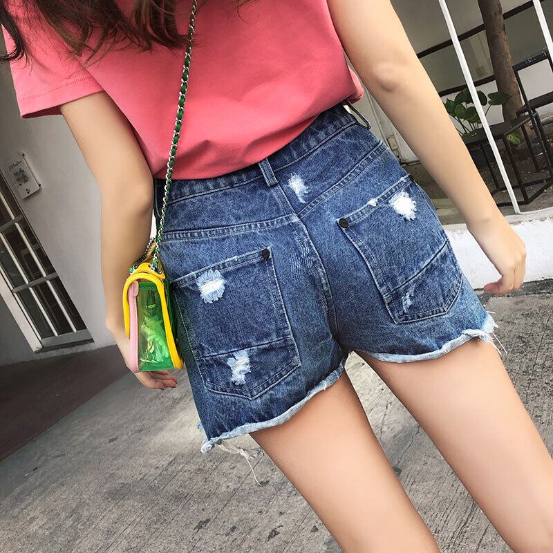 cow柄ブルーダメージショートパンツ ロング ハイウェスト サマー パンツ 夏物 ショーツ ブルマー 韓国系 ガーリー お呼ばれ カジュアル フェミニン BB8522206 | miel style clothing