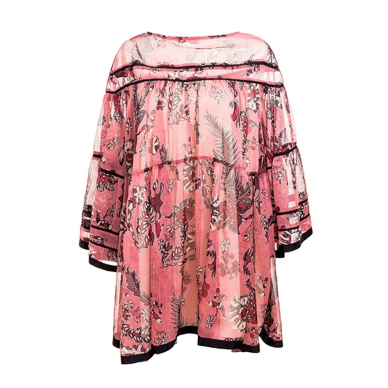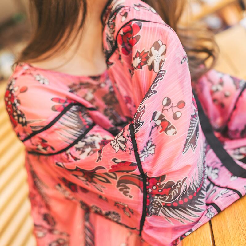 プリント柄ショートプリーツ締め付けなしワンピース ルーズ透け感あり☆スリーブジャケット きれいめ☆ 韓国系 ガーリー お呼ばれ カジュアル フェミニン BB2406521 | miel style clothing