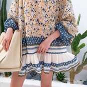 ボヘミアンきれいめ☆花柄スリーブドレス 裾スリルワンピース スカート ランタンスリーブ 韓国系 ガーリー お呼ばれ カジュアル フェミニン BB8816829 | miel style clothing