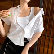 ♥今、売れてる抜け感のあるシャツブラウス 肩みせセクシー♥すっきり☆着痩せ スクウェア 韓国系 ガーリー お呼ばれ カジュアル フェミニン BB6811371 | miel style clothing