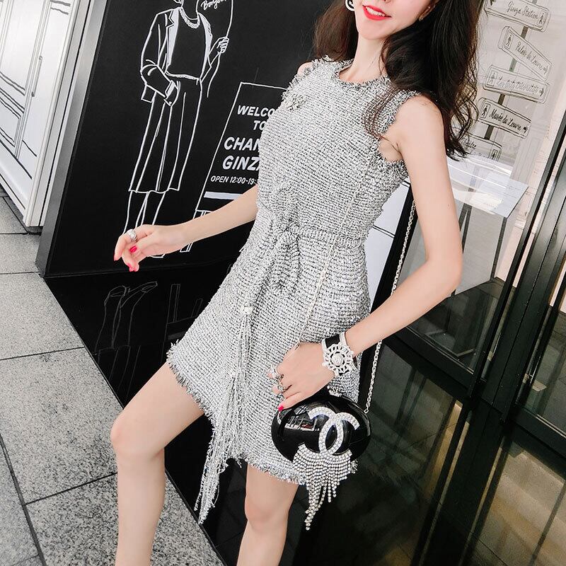 ゴージャス感が素敵♬きらきらグリッターノースリーブワンピース スリムスカート レトロ 韓国系 ガーリー お呼ばれ カジュアル フェミニン BB2761163 | miel style clothing