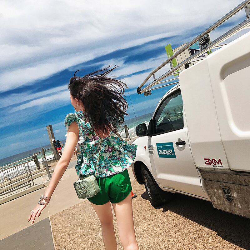 グリーン花柄プリント柄シャツブラウススプリングホルタートップス 大人ガーリー スウィート キュート カジュアル 春物 韓国系 ガーリー お呼ばれ カジュアル フェミニン BB9174532 | miel style clothing