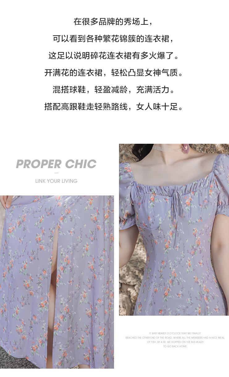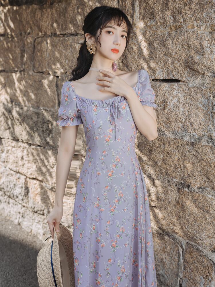 オレンジスカート スタンダードシフォン花柄ドレス ワンピースワンピース レトロ パープル 韓国系 ガーリー お呼ばれ カジュアル フェミニン AA0076906 | miel style clothing