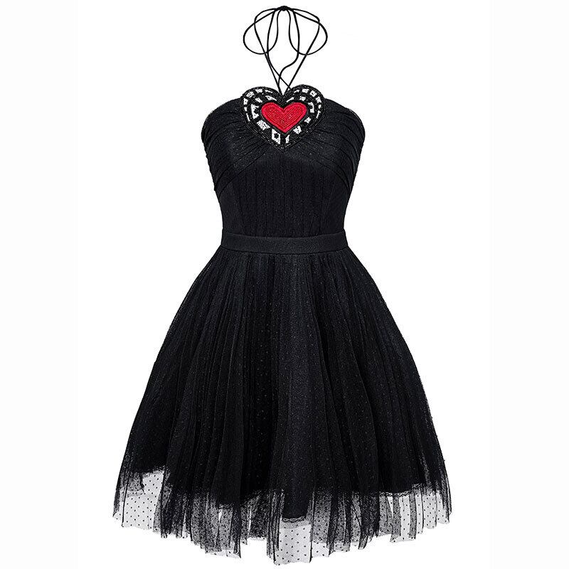 肩みせ&デコルテ大胆に♥ブラックメッシュビーズハートワンピース スカート きれいめ☆ 春物 韓国系 ガーリー お呼ばれ カジュアル フェミニン BB5635015 | miel style clothing