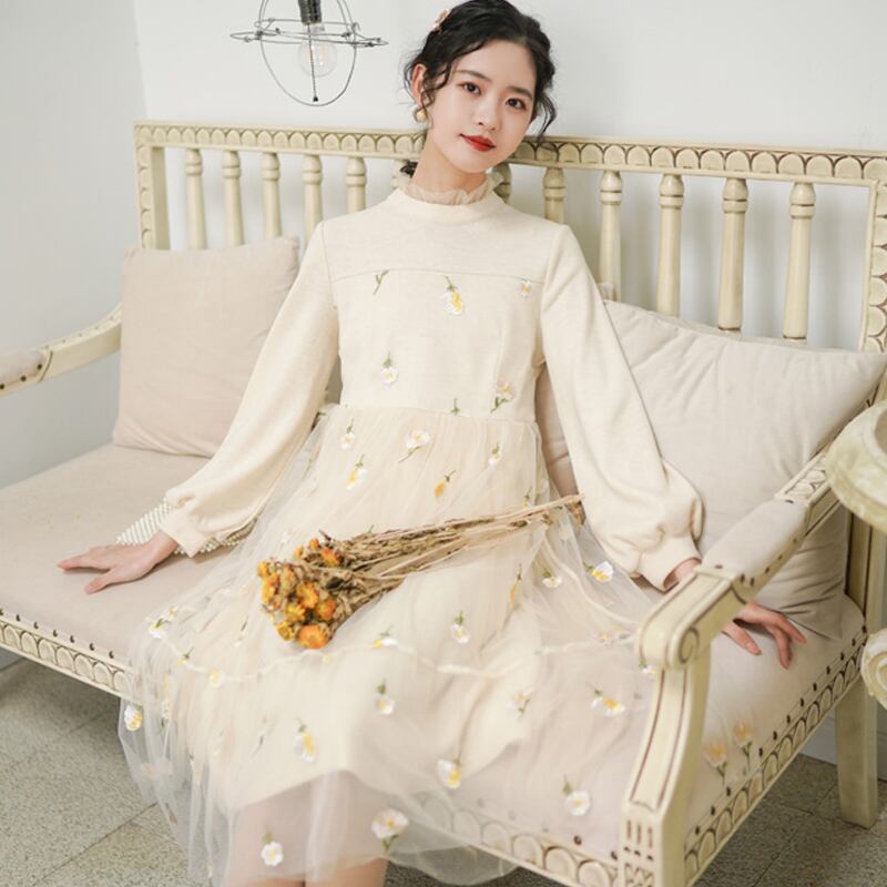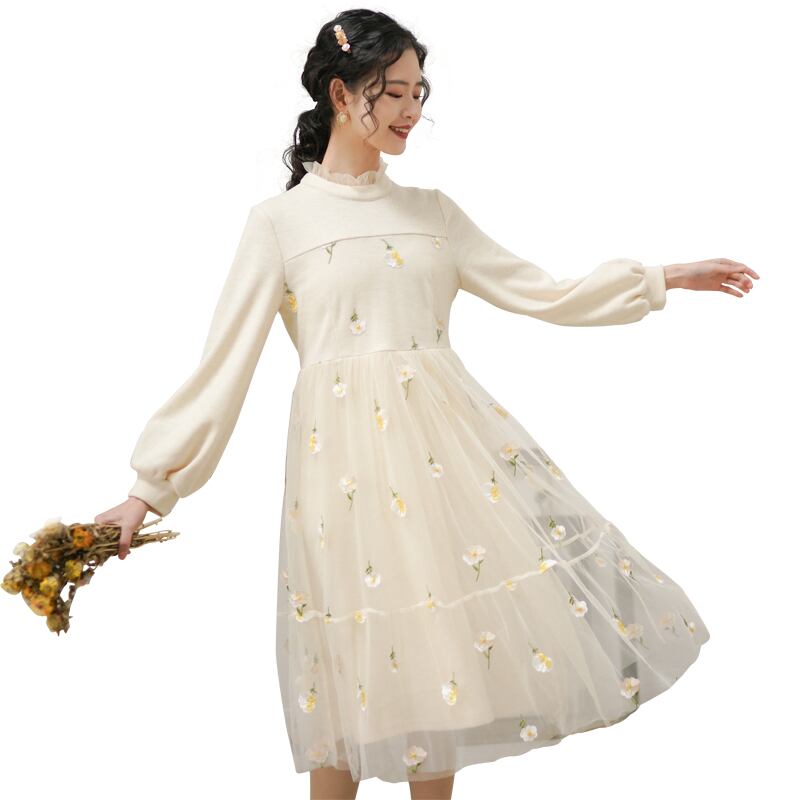 オレンジスカート ニット刺繍メッシュ ステッチ 韓国系 ガーリー お呼ばれ カジュアル フェミニン AA4522572