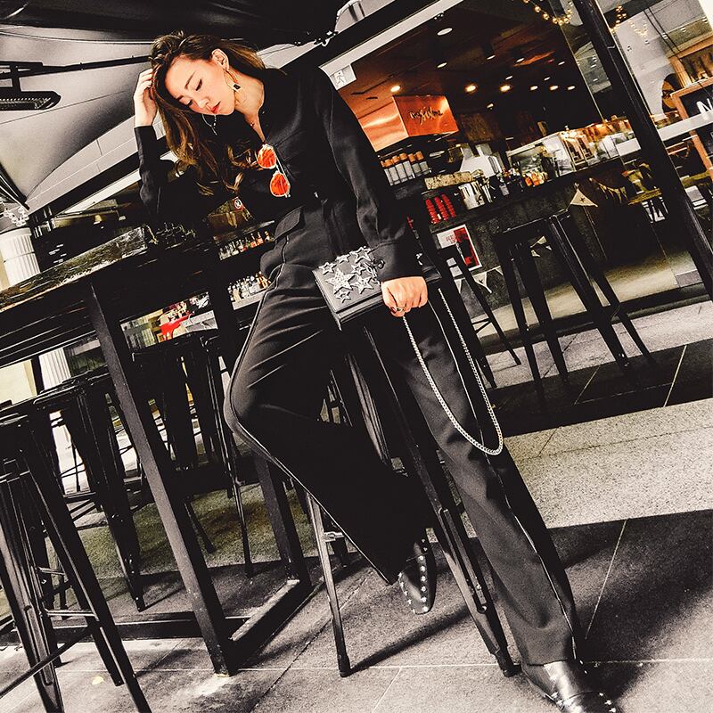 ブラックホワイトパンツ ロングスリム ステッチ 韓国系 ガーリー お呼ばれ カジュアル フェミニン BB2739243