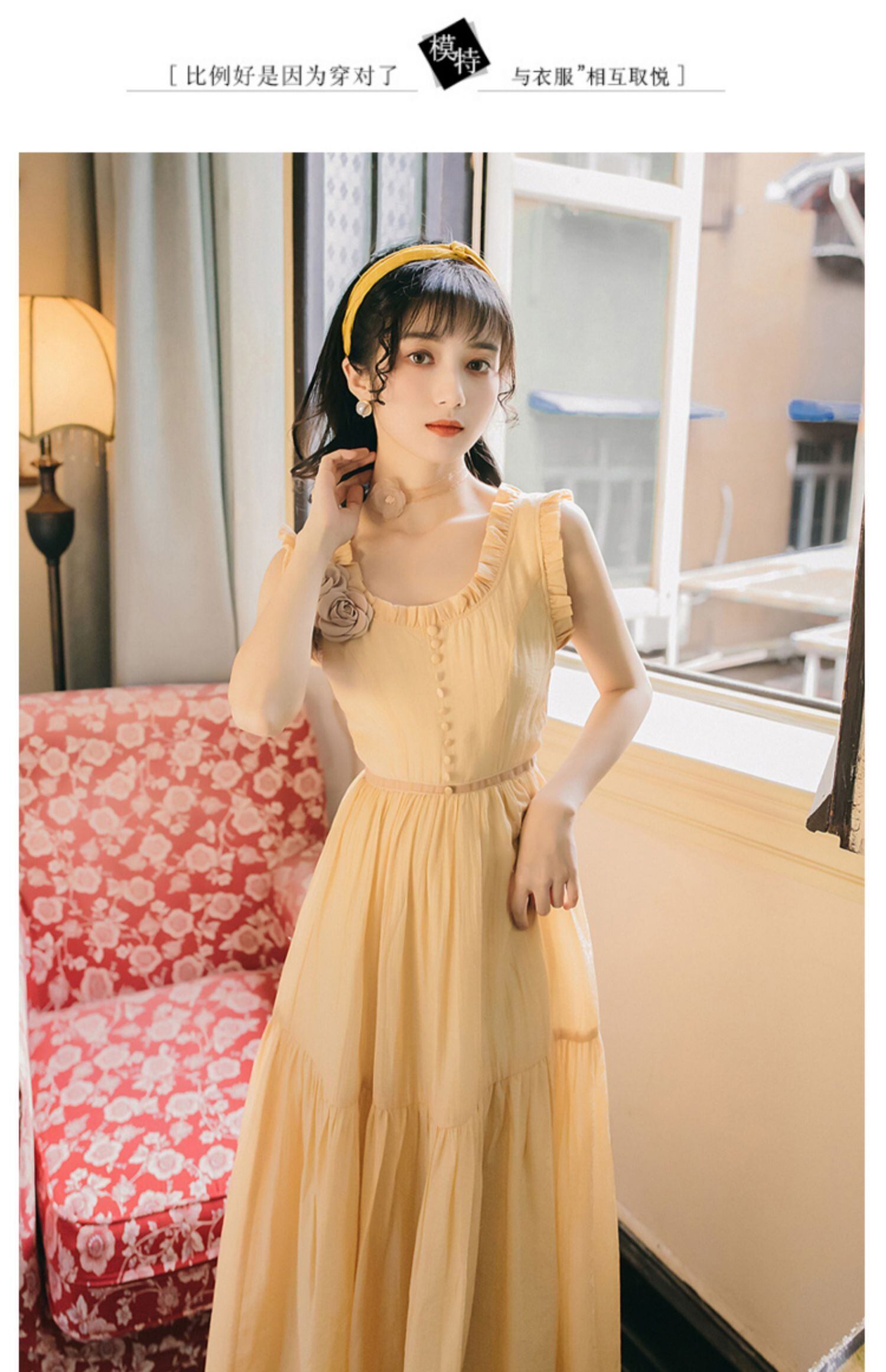 スカート イエロー 大人ガーリー スウィート キュート カジュアル フラワーデザイン 韓国系 ガーリー お呼ばれ カジュアル フェミニン AA1809343