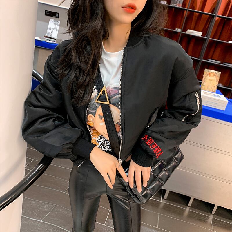 ブラック大人女子☆ショートルーズ刺繍プリントジャケット 韓国系 ガーリー お呼ばれ カジュアル フェミニン BB6625526