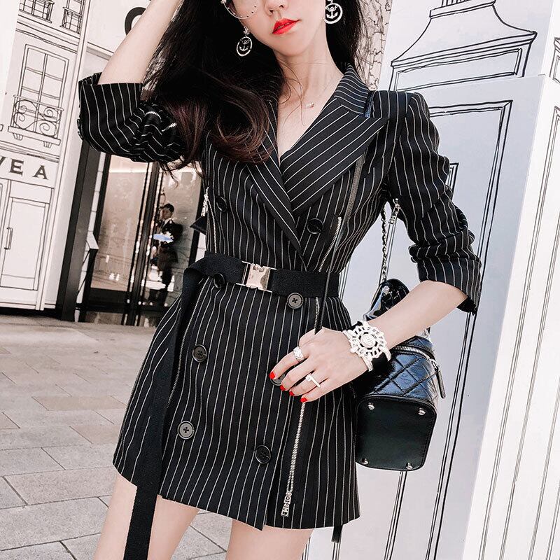 ジャケット ♬カワイイ♥カジュアルきれいめ☆ストライプウエストすっきり☆着痩せ ロング 韓国系 ガーリー お呼ばれ カジュアル フェミニン BB8927908