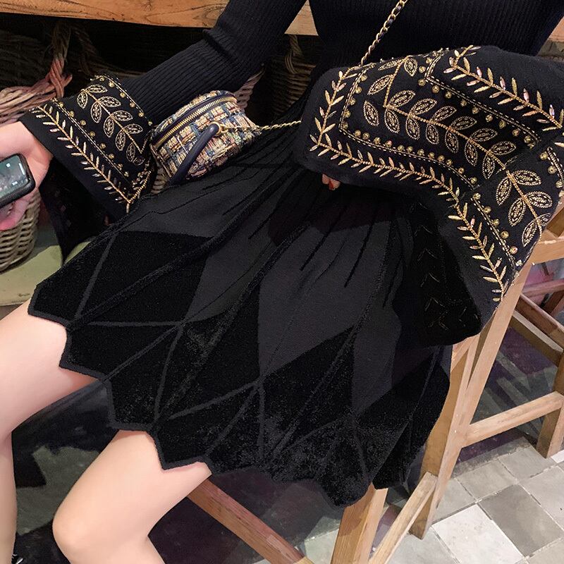 ブラック♬カワイイ♥プリーツニットスカート 大人女子☆ 韓国系 ガーリー お呼ばれ カジュアル フェミニン BB4728578