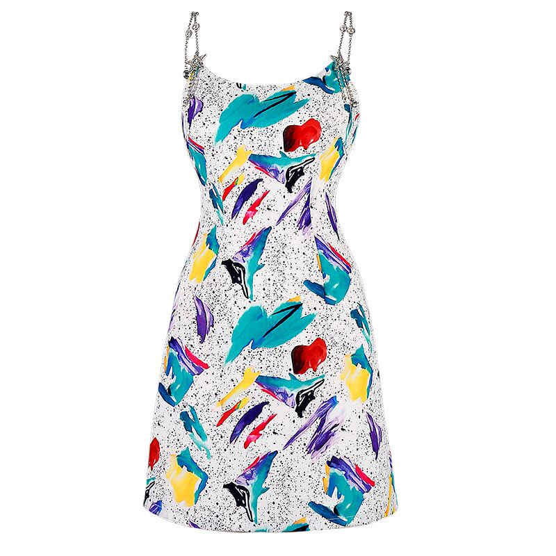白プリントパールキャミソールミニワンピース ウエストすっきり☆スカート ホワイト 真珠 韓国系 ガーリー お呼ばれ カジュアル フェミニン BB6021669 | miel style clothing