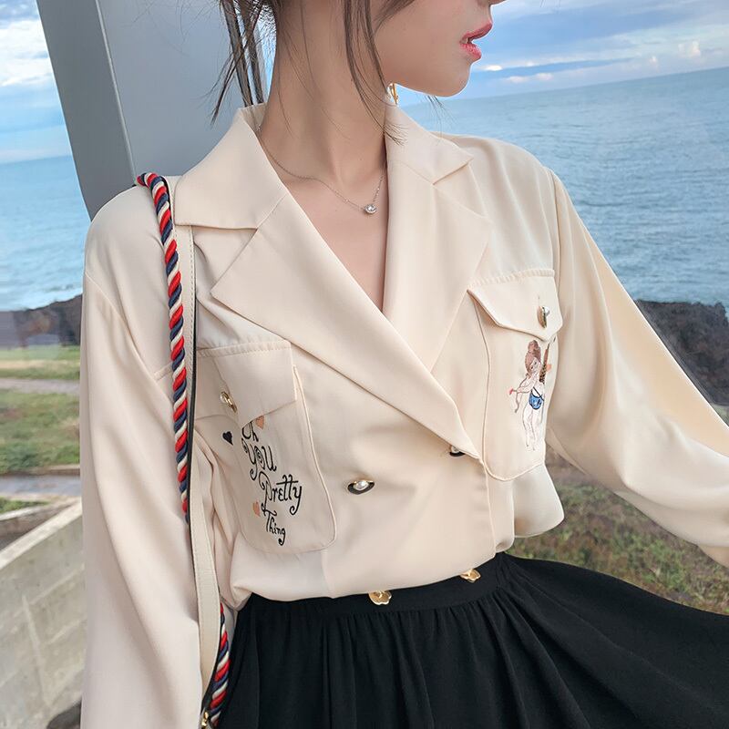 シャツブラウス刺繍白 ロング ホワイト 韓国系 ガーリー お呼ばれ カジュアル フェミニン BB3311912
