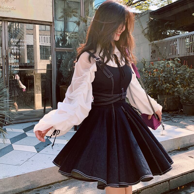ダークブルースリムスカート 韓国系 ガーリー お呼ばれ カジュアル フェミニン BB9264679