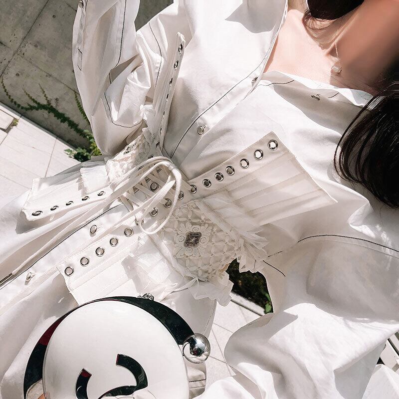 ストレッチウエストすっきり☆着痩せストラップ 白レーススタンダードベルト ホワイト レトロ エラスティック 伸縮 ハーネス 韓国系 ガーリー お呼ばれ カジュアル フェミニン BB6687054 | miel style clothing