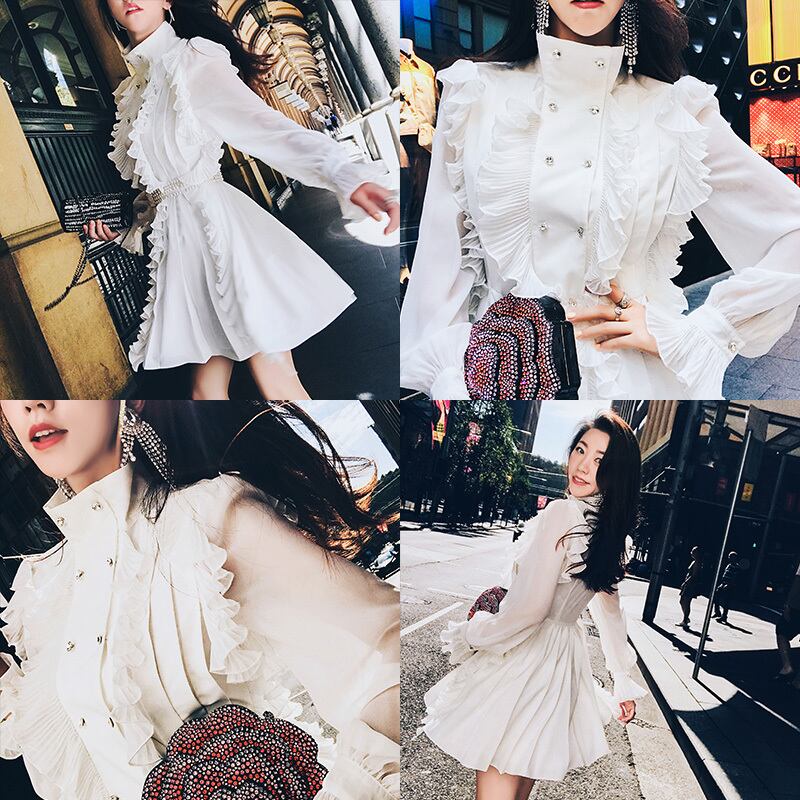 スタンダードスカート 白シフォン ホワイト レトロ 韓国系 ガーリー お呼ばれ カジュアル フェミニン BB3858071