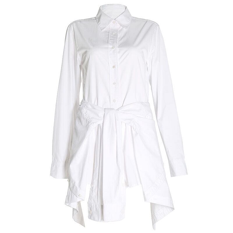 白コート シャツブラウスウエストすっきり☆着痩せ♥カワイイ♥ジャンプスーツ ジャンパースカートきれいめ☆ ホワイト 韓国系 ガーリー お呼ばれ カジュアル フェミニン BB1744672