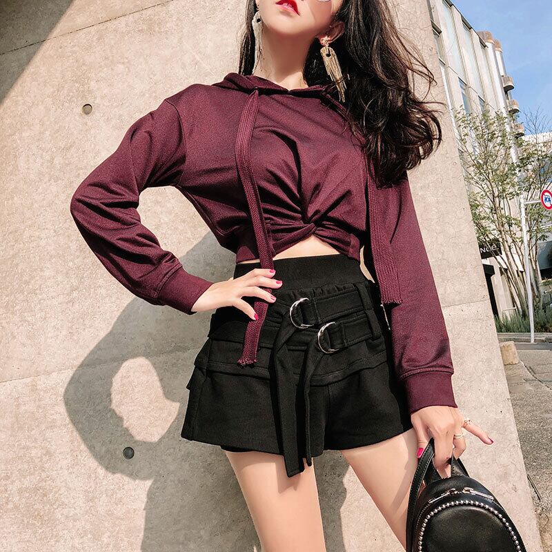 ショート♥カワイイ♥フードトップス ロング 韓国系 ガーリー お呼ばれ カジュアル フェミニン BB4546992