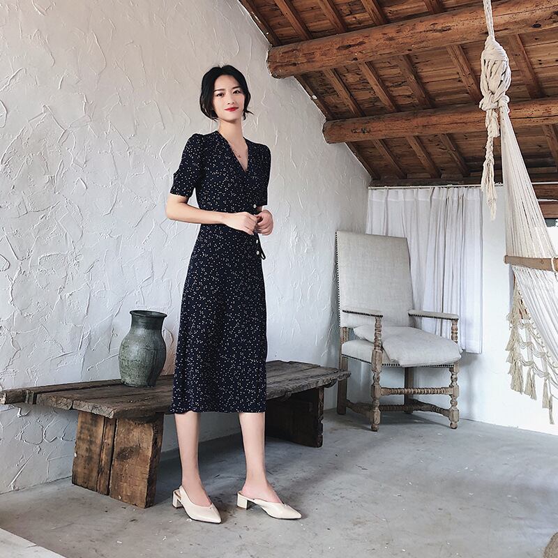 色:ネイビーブルーフレンチ,黒い点