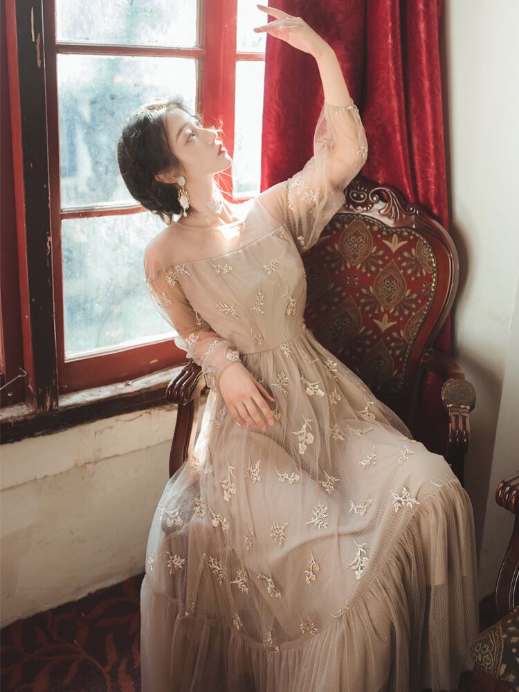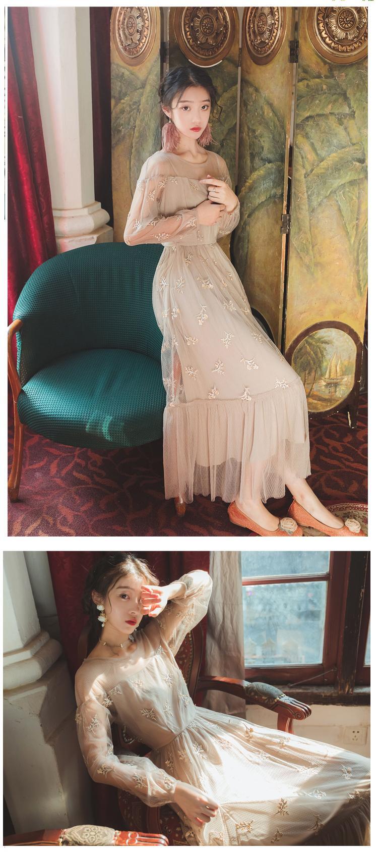 ♥♡♥ ロングスカート マキシスタンダードレース刺繍ドレス ワンピースサマー レトロ 夏物 フラワーデザイン ♥♡♥韓国系 ガーリー お呼ばれ カジュアル フェミニン エレガント ビジュー 清楚 オルチャン AA2115471