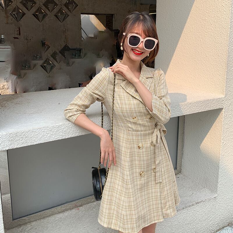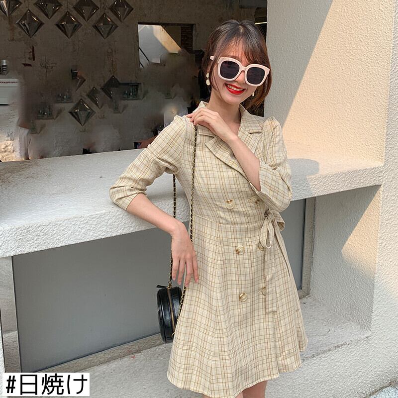 ♥♡♥ チェック柄きれいめ☆ウエストすっきり☆着痩せダブルブレスト膝丈 ひざ丈スカート ♥♡♥韓国系 ガーリー お呼ばれ カジュアル フェミニン エレガ ント ビジュー 清楚 オルチャン CC0325222 | miel style clothing