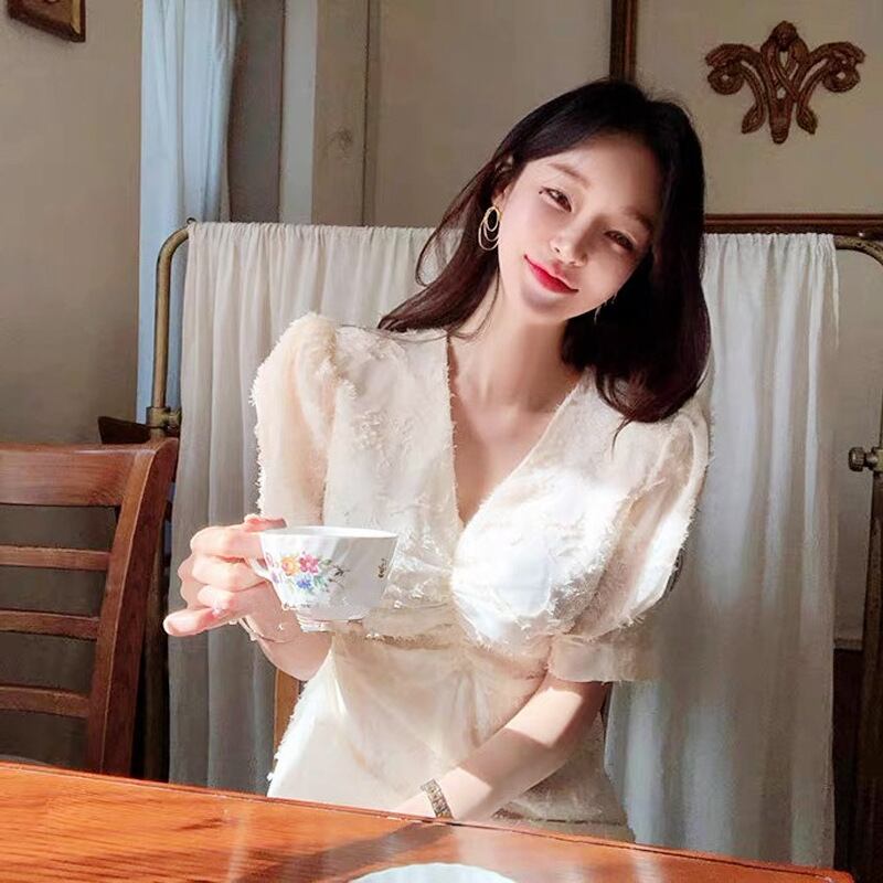 ♥♡♥ スリーブVネックマーメイドワンピースドレスOP ♥♡♥韓国系 ガーリー お呼ばれ カジュアル フェミニン エレガ ント ビジュー 清楚 オルチャン CC7003050 | miel style clothing
