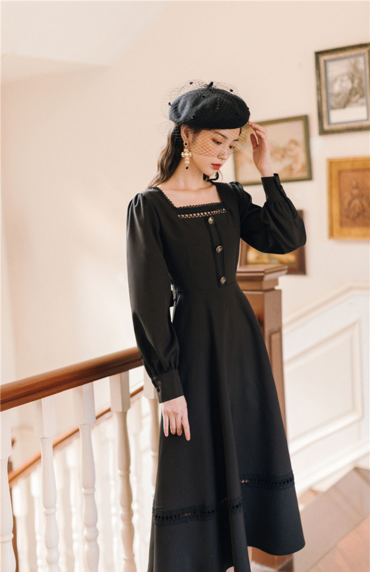♥♡♥ スカート ブラックロングウィンターウエストすっきり☆着痩せ 冬物 フラワーデザイン ♥♡♥韓国系 ガーリー お呼ばれ カジュアル フェミニン エレガント ビジュー 清楚 オルチャン AA1321320 | miel style clothing