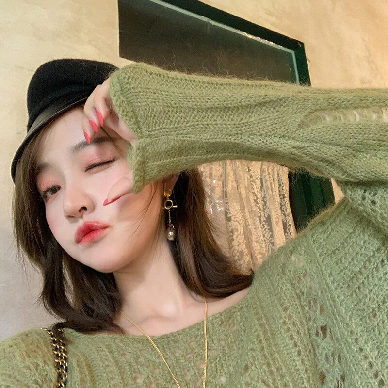 白グリーンニットブラウス 大人女子☆♥カワイイ♥プルオーバー セーター ホワイト 韓国系 ガーリー お呼ばれ カジュアル フェミニン BB4381019