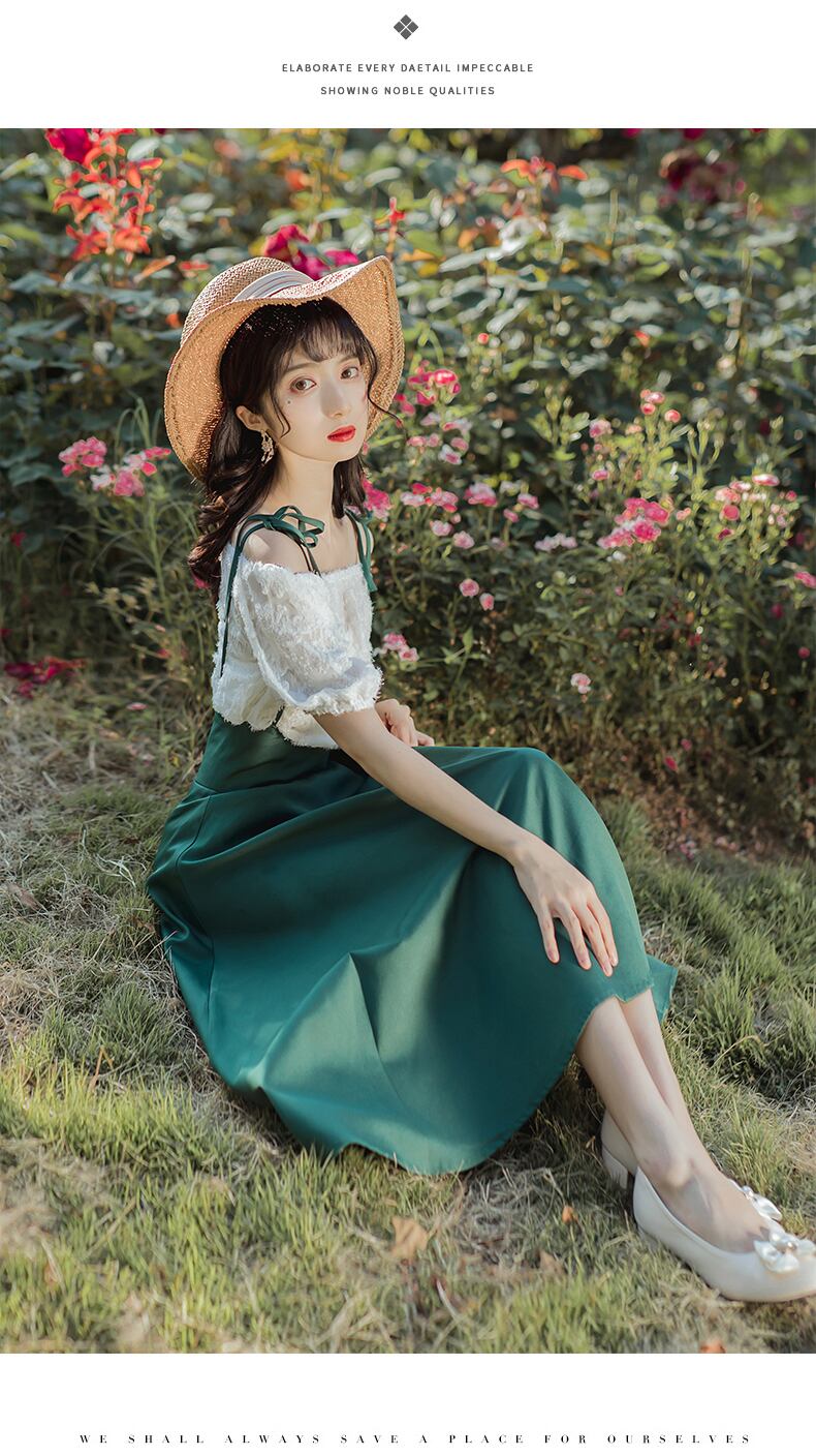 ♥♡♥ スタンダードスリーブスカート レトロ スウィート ♥♡♥韓国系 ガーリー お呼ばれ カジュアル フェミニン エレガント ビジュー 清楚 オルチャン AA3947406 | miel style clothing