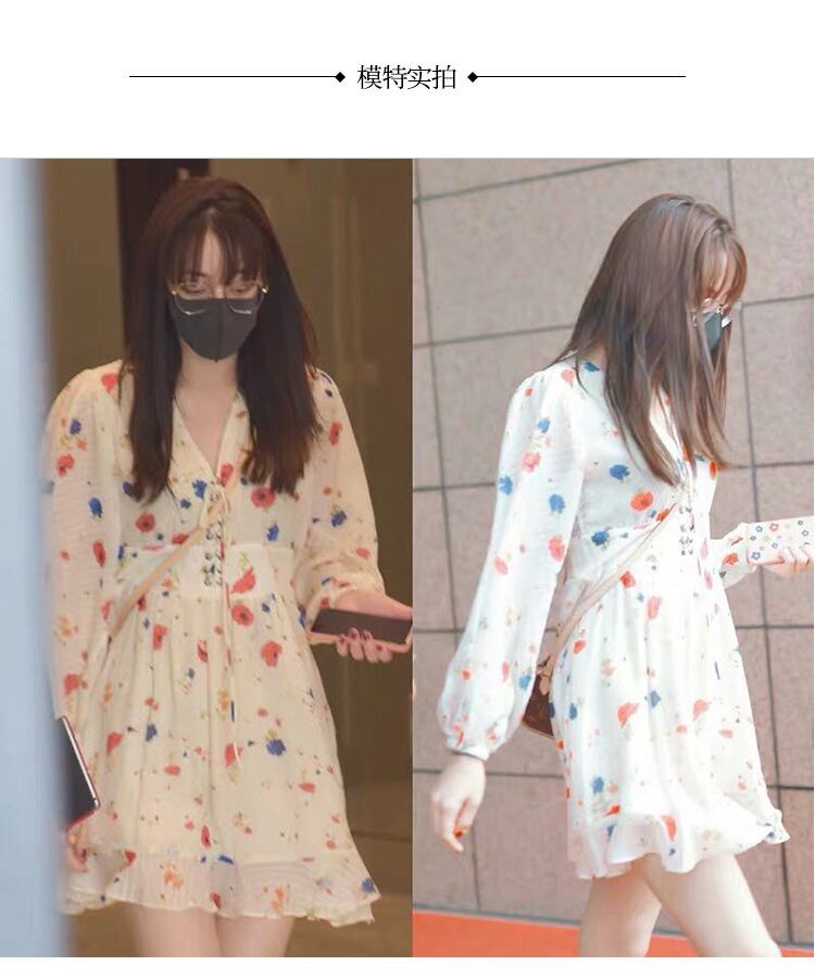 ♥♡♥ オータムシフォン花柄Vネック♥カワイイ♥スカート ロング スウィート 秋物 ♥♡♥韓国系 ガーリー お呼ばれ カジュアル フェミニン エレガ ント ビジュー 清楚 オルチャン CC1595408 | miel style clothing