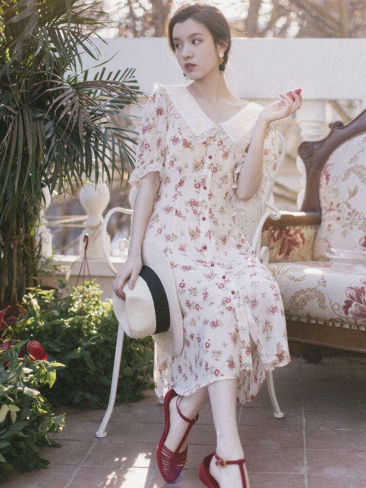♥♡♥ きれいめ☆オレンジスカート 花柄シフォン ♥♡♥韓国系 ガーリー お呼ばれ カジュアル フェミニン エレガント ビジュー 清楚 オルチャン AA1766538 | miel style clothing
