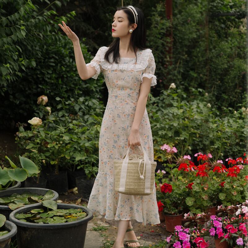 ♥♡♥ スカート ロングマキシ花柄 フラワーデザイン スクウェア ♥♡♥韓国系 ガーリー お呼ばれ カジュアル フェミニン エレガント ビジュー 清楚 オルチャン AA5640055 | miel style clothing