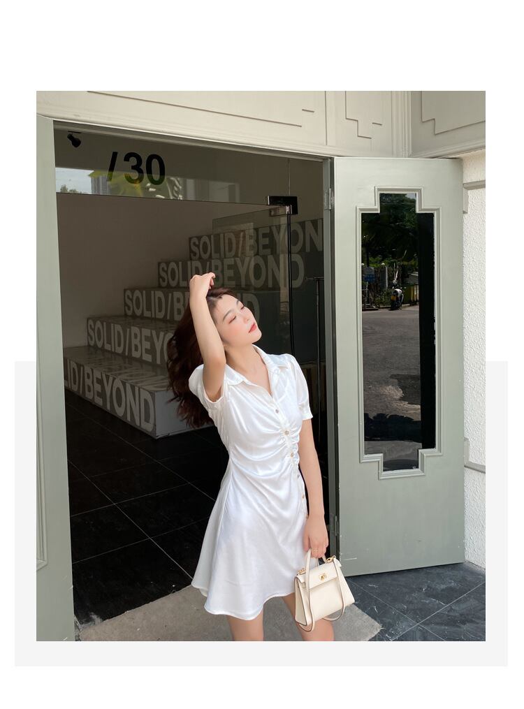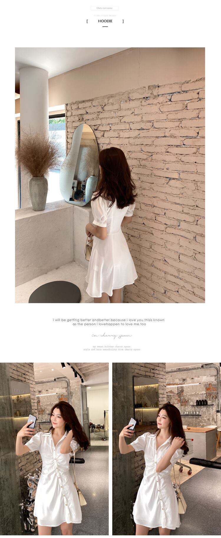 ♥♡♥ スリム白ロングきれいめ☆シャツブラウススカート ホワイト ♥♡♥韓国系 ガーリー お呼ばれ カジュアル フェミニン エレガ ント ビジュー 清楚 オルチャン CC3795651 | miel style clothing