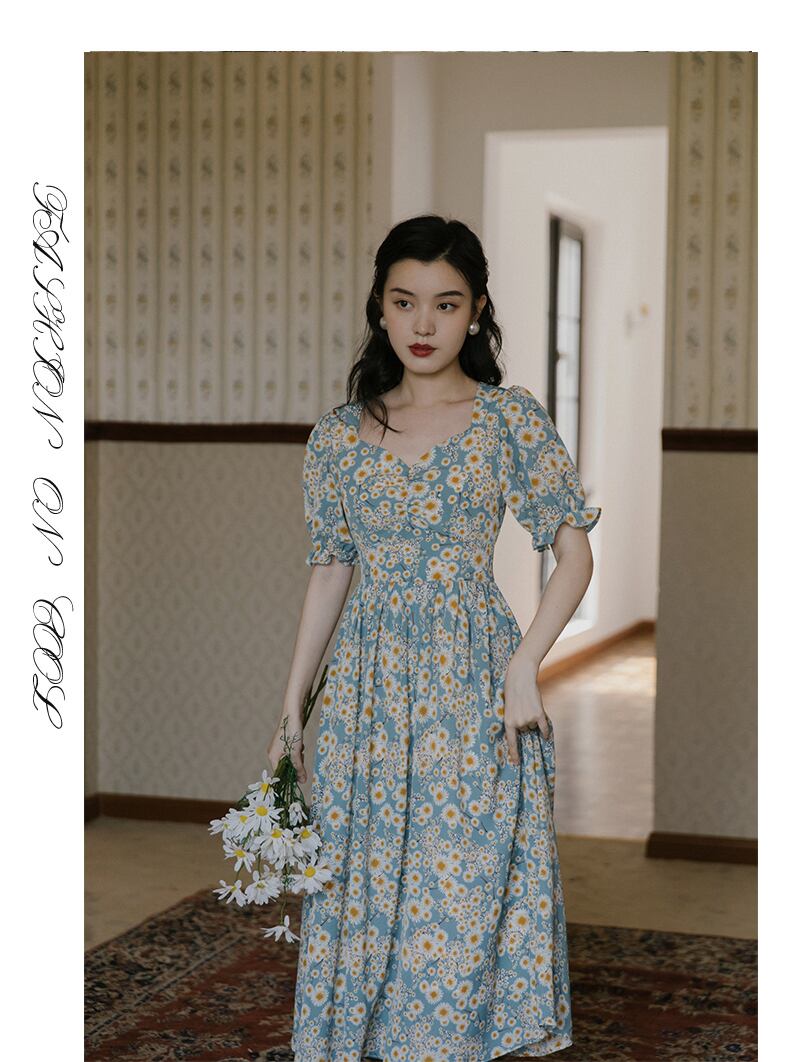 ♥♡♥ サマースタンダードスリーブ花柄 レトロ 夏物 ♥♡♥韓国系 ガーリー お呼ばれ カジュアル フェミニン エレガント ビジュー 清楚 オルチャン AA1657264 | miel style clothing