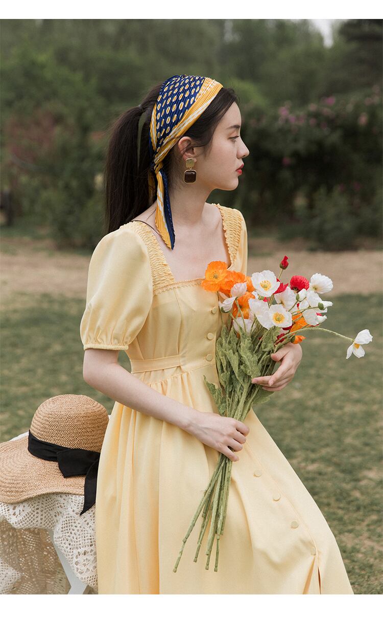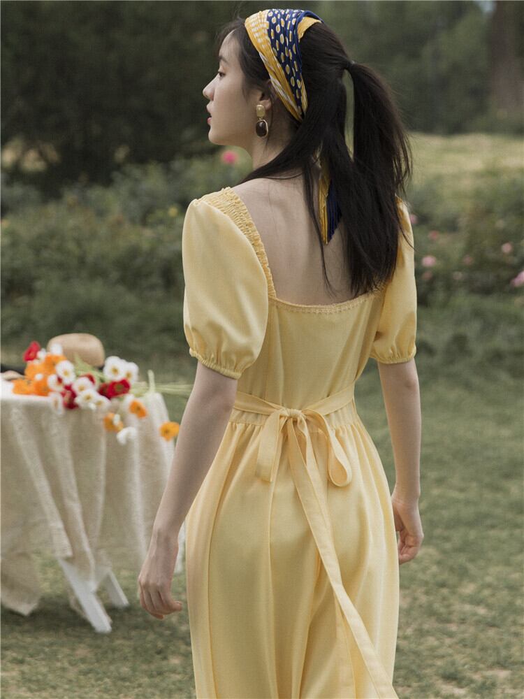 ♥♡♥ スタンダードイエローロング レトロ スカート フラワーデザイン スクウェア ♥♡♥韓国系 ガーリー お呼ばれ カジュアル フェミニン エレガント ビジュー 清楚 オルチャン AA1915840