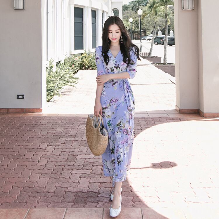 ♥♡♥ ロングスカート ♥カワイイ♥スリム♡Vネック ビーチ ♥♡♥韓国系 ガーリー お呼ばれ カジュアル フェミニン エレガ ント ビジュー 清楚 オルチャン CC1456530 | miel style clothing