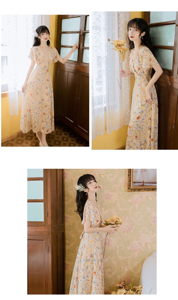 ♥♡♥ Vネックスカート 花柄 スウィート ♥♡♥韓国系 ガーリー お呼ばれ カジュアル フェミニン エレガント ビジュー 清楚 オルチャン AA0597782 | miel style clothing