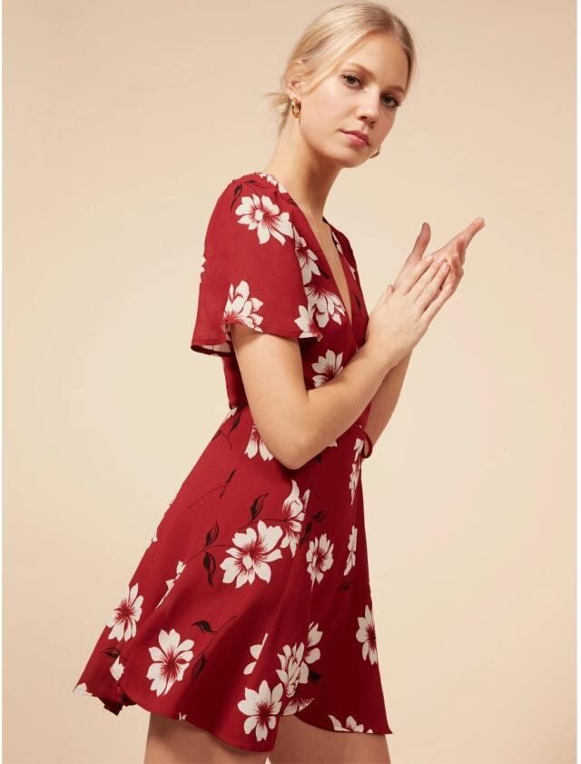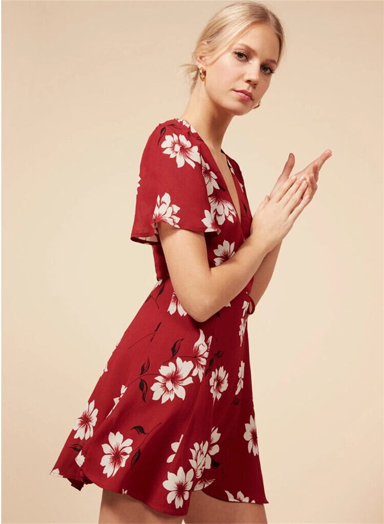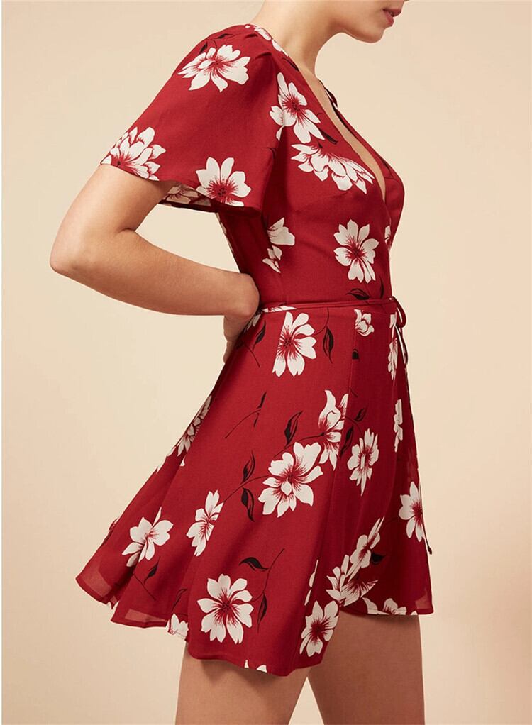 ♥♡♥ Vネックブルゴーニュプリント花柄 スカート ♥♡♥韓国系 ガーリー お呼ばれ カジュアル フェミニン エレガ ント ビジュー 清楚 オルチャン CC0396269 | miel style clothing