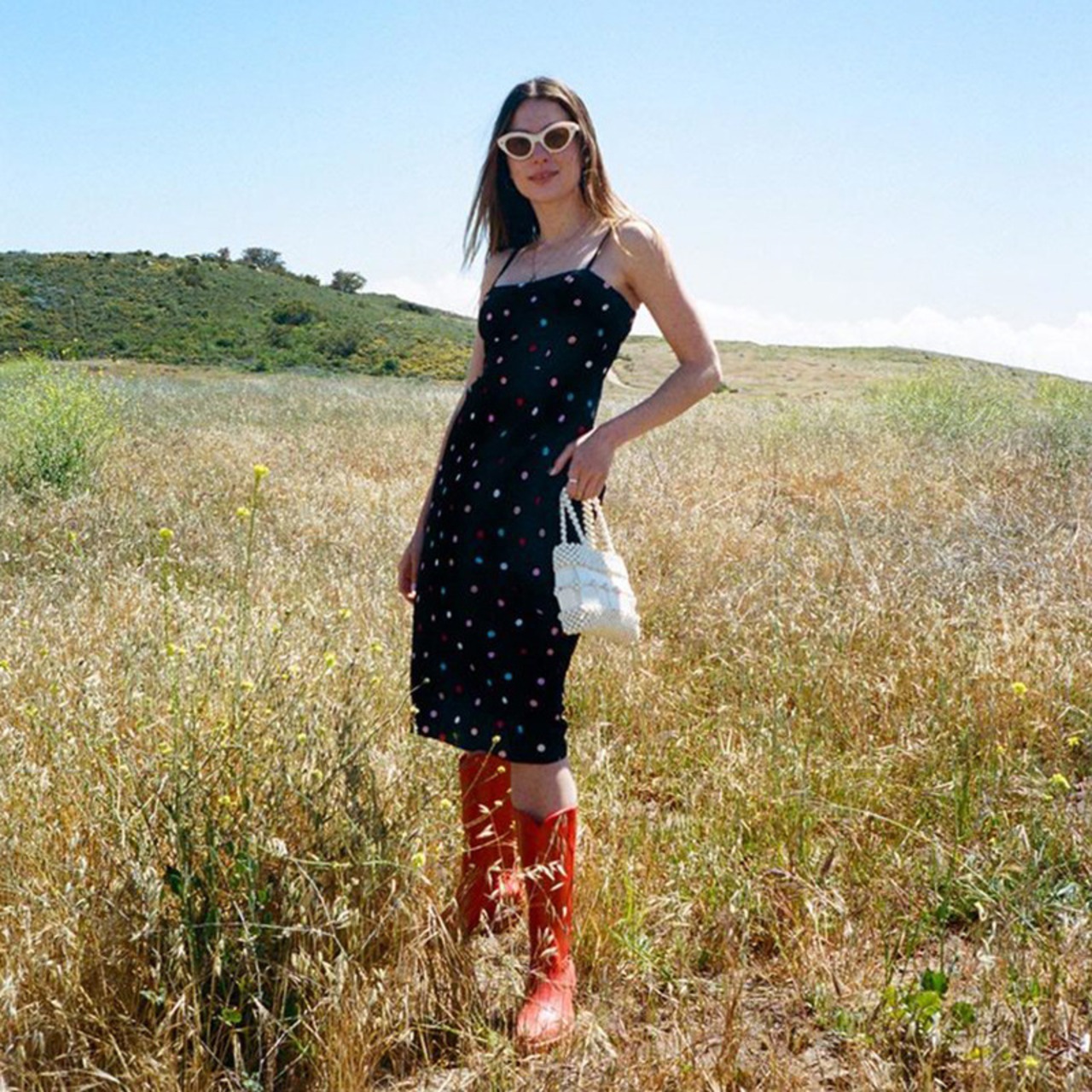 ♥ブラック水玉キャミワンピースドレスOP スカート レトロ ♥♡♥韓国系 ガーリー お呼ばれ カジュアル フェミニン エレガ ント ビジュー 清楚 オルチャン CC7307242 | miel style clothing