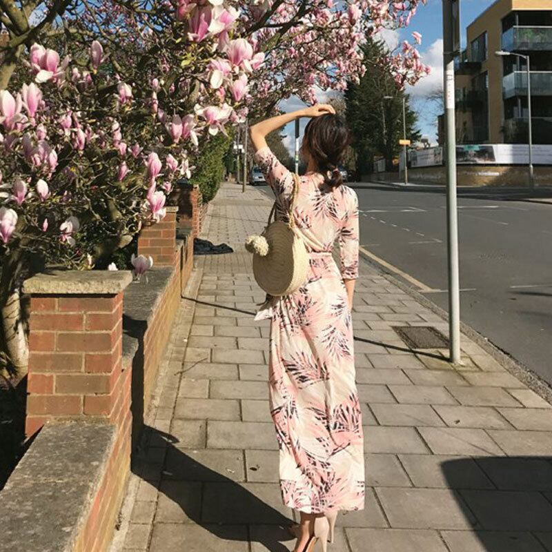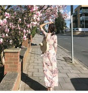 ♥♡♥ ロング花柄スカート Vネック今年流行☆ フラワーデザイン ♥♡♥韓国系 ガーリー お呼ばれ カジュアル フェミニン エレガ ント ビジュー 清楚 オルチャン CC8277878 | miel style clothing