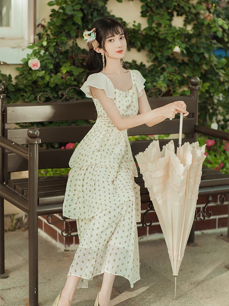 ♥♡♥ 水玉スカート スウィート ♥♡♥韓国系 ガーリー お呼ばれ カジュアル フェミニン エレガント ビジュー 清楚 オルチャン AA7748161
