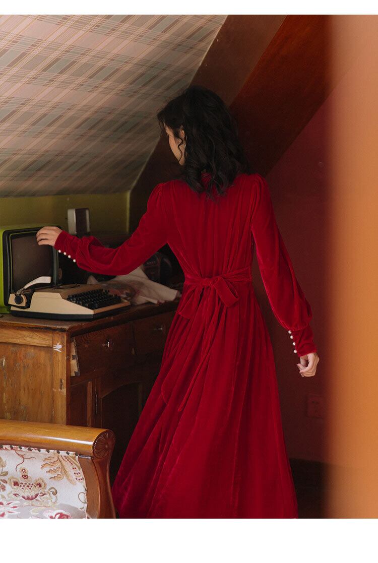 ♥♡♥ ♡レッドスカート ゴールドベルベットウィンター 冬物 ♥♡♥韓国系 ガーリー お呼ばれ カジュアル フェミニン エレガント ビジュー 清楚 オルチャン AA5032208