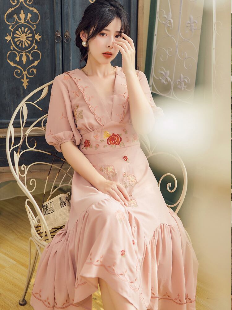 ♥♡♥ スカート スタンダード レトロ フラワーデザイン ♥♡♥韓国系 ガーリー お呼ばれ カジュアル フェミニン エレガント ビジュー 清楚 オルチャン AA4842165 | miel style clothing