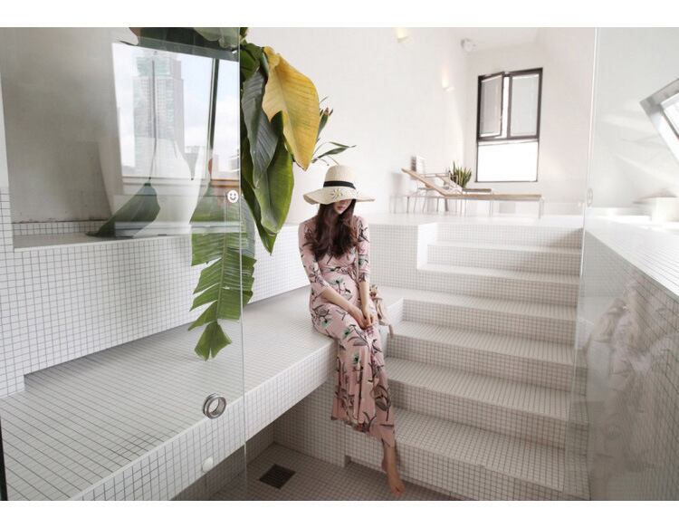 色:ピンクフラワーロングノーカラー