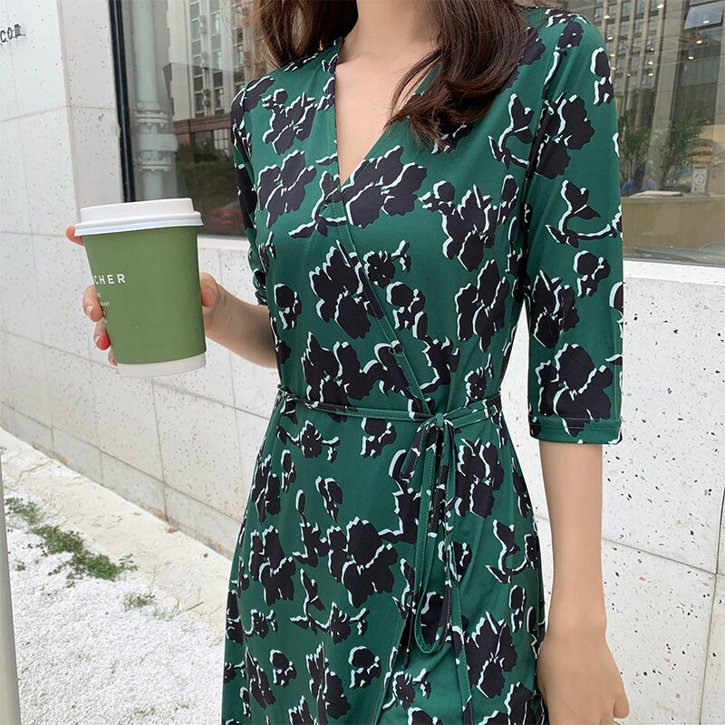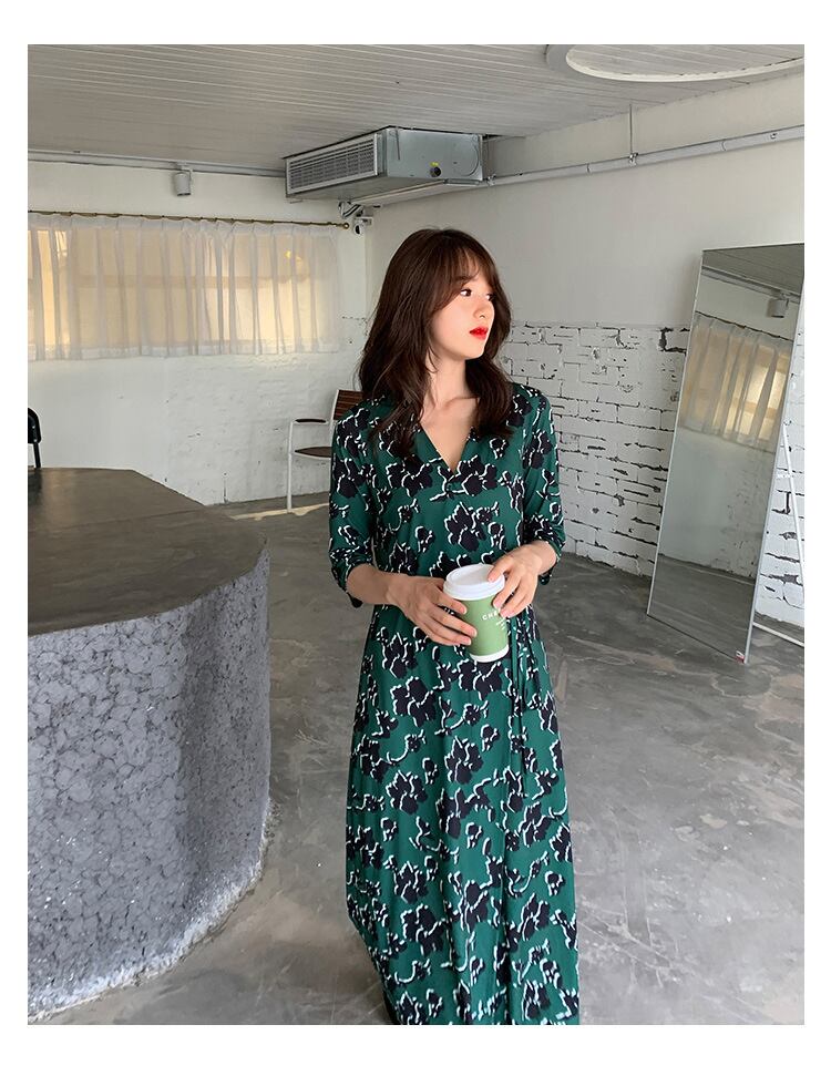 ♥♡♥ Vネックスカート グリーンワンピース今年流行☆ロング ビーチ ♥♡♥韓国系 ガーリー お呼ばれ カジュアル フェミニン エレガ ント ビジュー 清楚 オルチャン CC9249610 | miel style clothing
