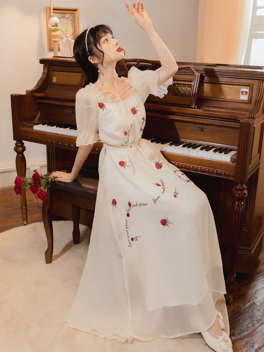 ♥♡♥ スタンダードスカート ロングマキシ刺繍 レトロ スウィート ♥♡♥韓国系 ガーリー お呼ばれ カジュアル フェミニン エレガント ビジュー 清楚 オルチャン AA3373640 | miel style clothing